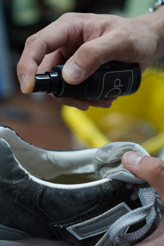 2:中敷きとスニーカー内部、ソール部分に軽くスプレーしてください。