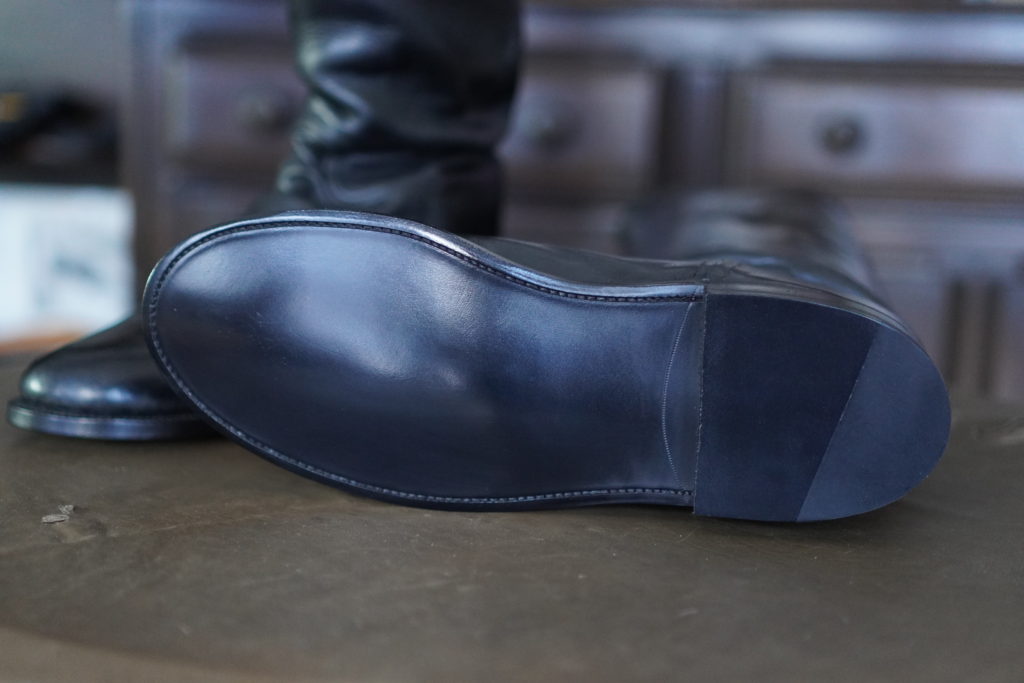 レザーソールを採用しております。ソールの色は黒で統一することによりブーツ全体の雰囲気も一層引き締まって見えます。アッパーも磨いてあげればピカピカになってまたガンガン乗馬を楽しめそうですね(^^♪