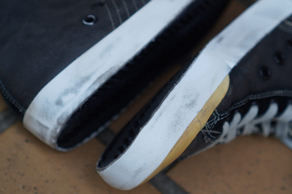 因みに形状が変わって宜しければサイドテープを残して靴底の上にラバーをポンと張り付ける簡易的な修理も可能ではありますが靴の状態次第ではちょっぴり不格好になったりもしますので基本的にはサイドテープ交換も併せての修理がおすすめです!